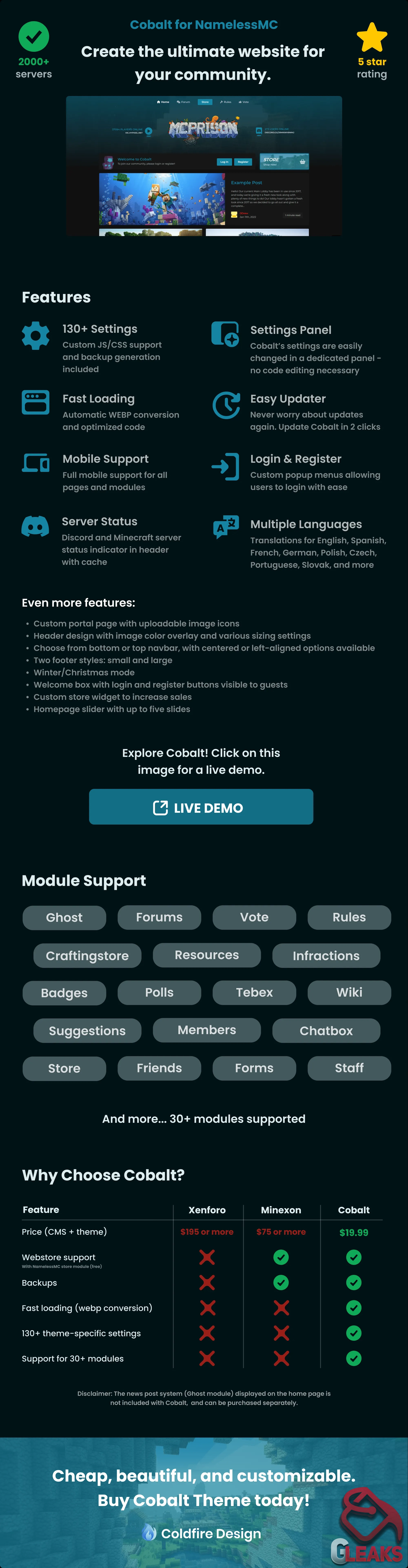 to remove the footer credit in cobalt namelessMC:Changelog: